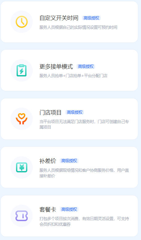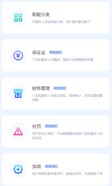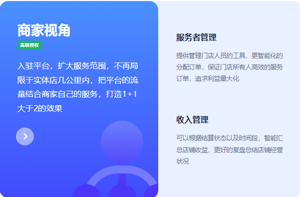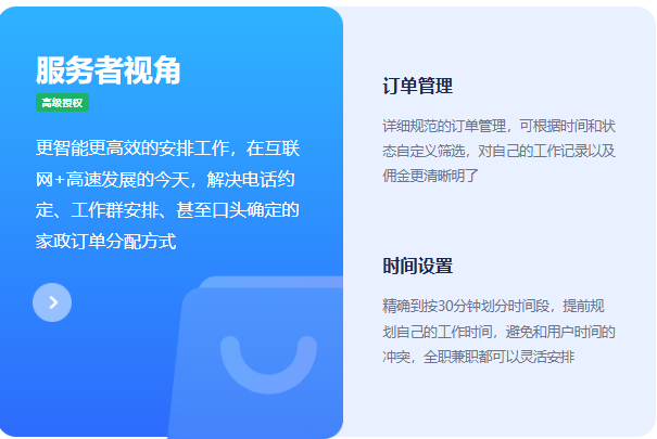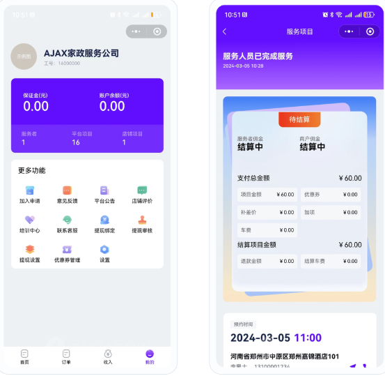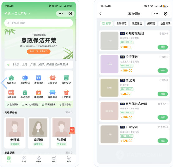 基于thinkphp和原生微信小程序开发的一款同城预约、上门服务、到店核销家政系统,用户端、服务端(高级授权)、门店端(高级授权)各端相互依赖又相互独立,支持选择项目、选择服务人员、选择门店多种下单方式,支持上门服务和到店核销两种服务方式,支持自营和多商家联营(高级授权)两种运营模式,同时支持多城市并且设置每个城市专属服务项目。