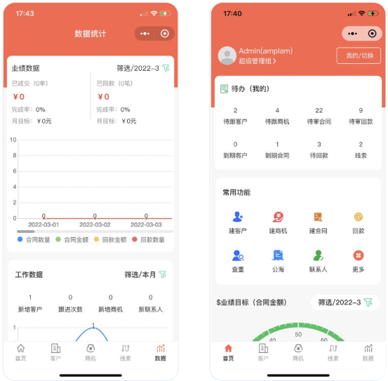 基于ThinkPHP+FastAdmin开发的CRM客户关系管理系统,专门为企业销售团队量身定制的工具,它能够有效地管理跟进客户,提高销售业绩!提供无加密源代码,企业可以自行根据不同需求进行开发。Uniapp版本(高级授权)支持编译出微信小程序和H5。