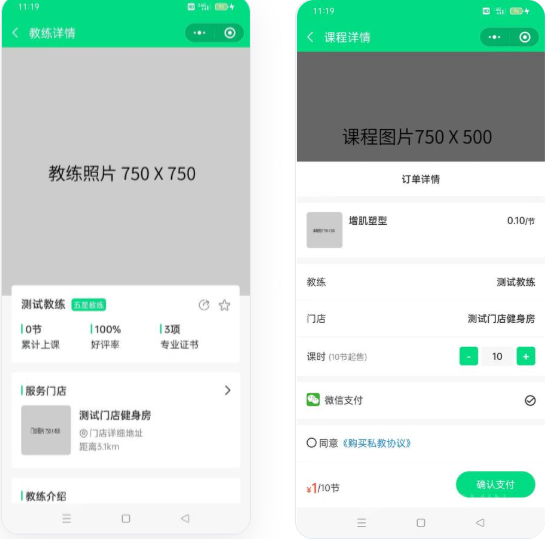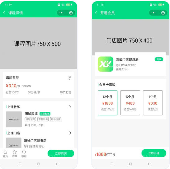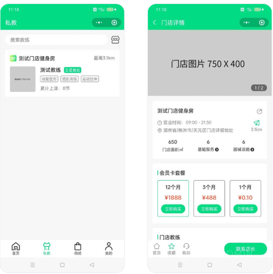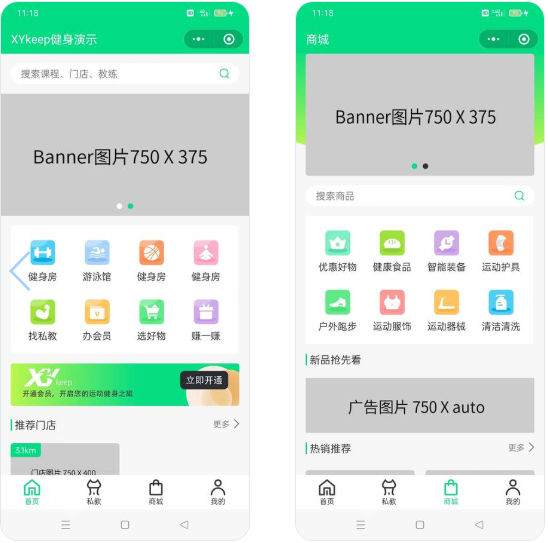 基于ThinkPHP+UniApp(目前仅支持微信小程序和公众号)开发的健身相关行业微信小程序,程序适用于健身房、瑜伽馆、游泳馆、篮球馆等健身培训场所。平台拥有课程售卖、课程预约、多门店管理、私教预约、教练端、会员卡办理、在线商城、分销模块(高级授权)、页面自定义装修等功能,为健身场馆提供智慧型运营解决方案,平台简单便捷,能有效提升场馆办公效率