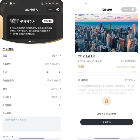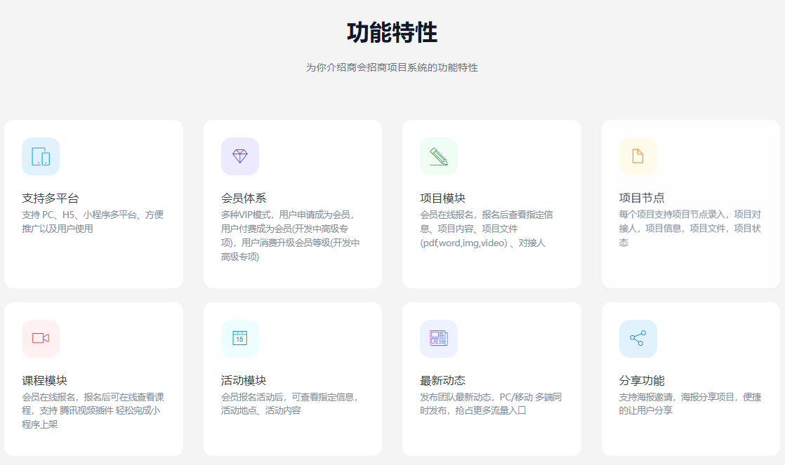 一款基于FastAdmin+ThinkPHP+Uniapp开发的商会招商项目系统,是一个集PC和移动端功能于一体的解决方案,线上线下进行服务,围绕 活动报名、在线课程、项目大厅、线下签到、会员系统等。为商会提供了更加便捷高效的管理方式,提升了商会活动和项目的组织、推广和运营能力。