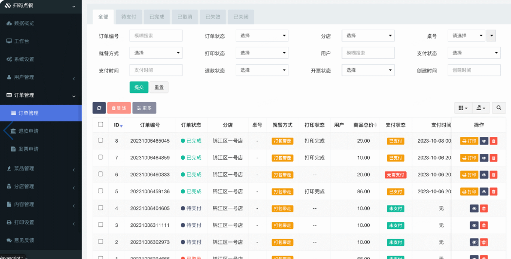 晓羽扫码点餐快销版系统