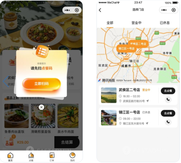 基于ThinkPHP+FastAdmin+UniApp开发的扫码点餐系统(快销版),主要应用于快销类餐饮,例如早餐、面馆、快餐、零食小吃等快捷扫码点餐需求,快销版仅支持先付款后就餐模式,不支持先就餐后付费模式。
