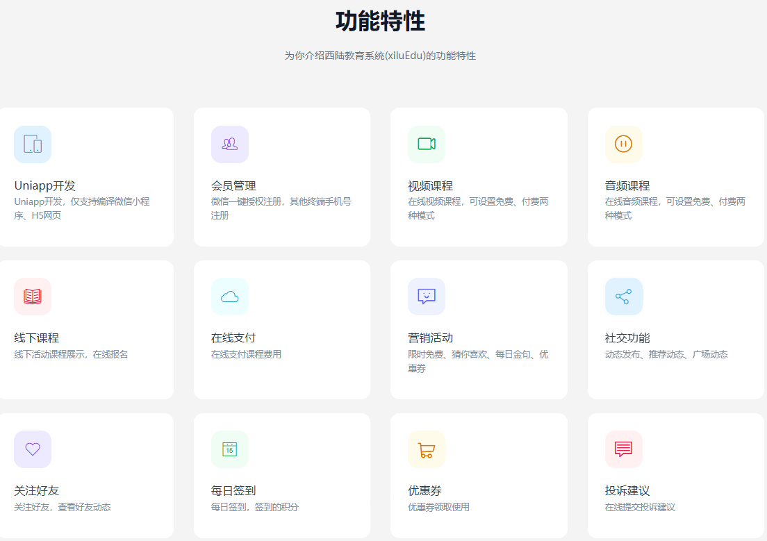 一款基于FastAdmin+ThinkPHP+Uniapp开发的西陆教育系统(微信小程序、H5网页),支持线上线下课程报名,线上课程支持视频课程、音频课程、图文课程、课程在线支付。
