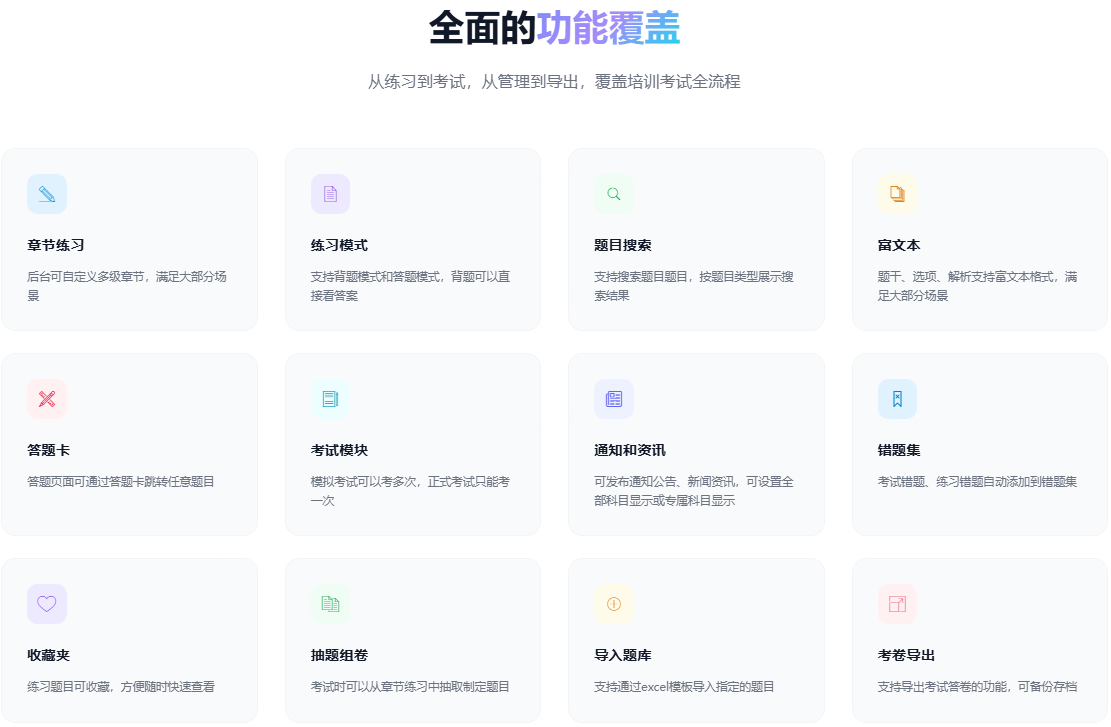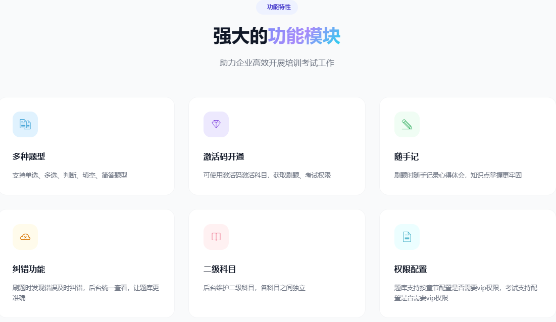 基于FastAdmin+ThinkPHP和Uniapp进行开发的企业培训考试系统,包含章节练习、历年真题、错题记录、模拟考试和正式考试等模块。提供全部无加密源码,可私有化部署。