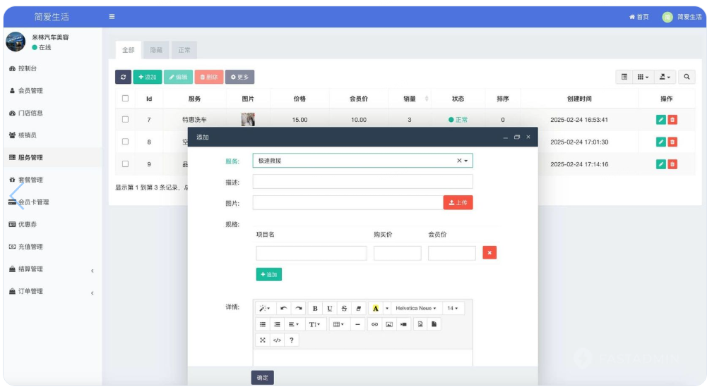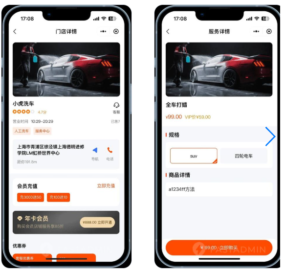 一款基于FastAdmin+ThinkPHP+Uniapp开发的多门店洗车系统,包含用户端(小程序)、门店员工端(与用户端共用小程序)、门店端(PC)、平台管理端(PC)。 门店分连锁门店和独立门店,连锁门店主账号可以创建多个分店。
