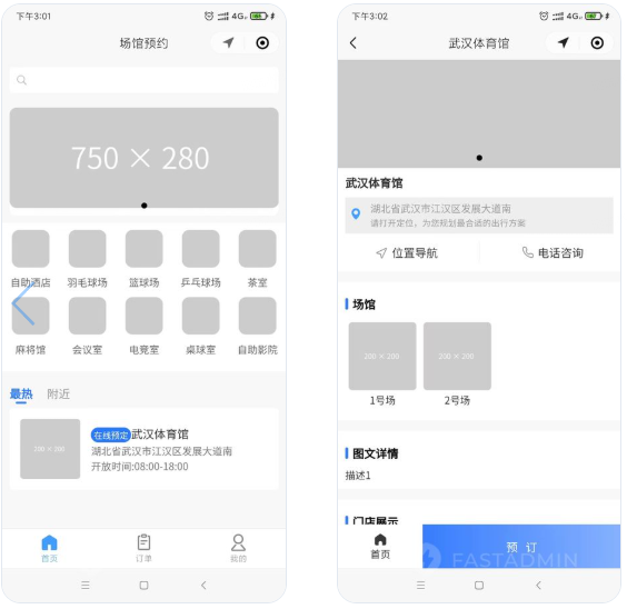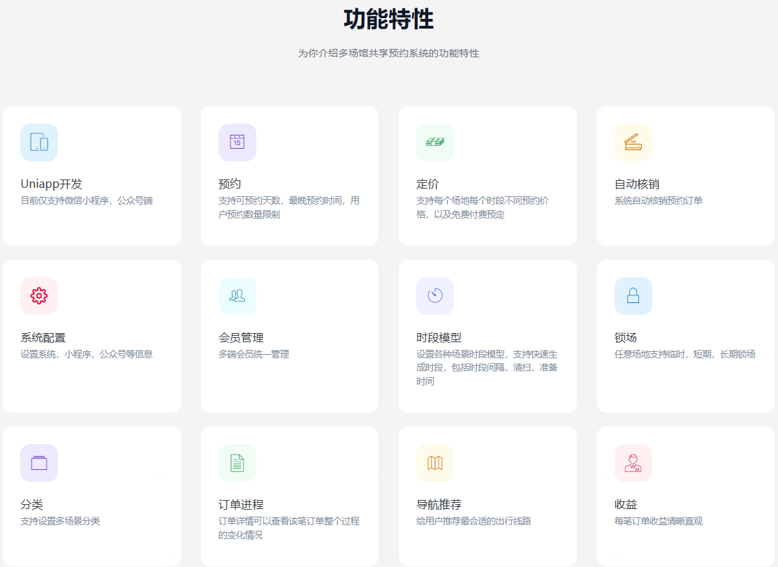 多场馆共享预约系统,一款基于FastAdmin+ThinkPHP+Uniapp开发的多场景预约系统。目前支持微信小程序,公众号端。非常灵活地设置各种时段模型,各类场馆,场地,锁场,导航,筛选,在线预约,支付退款,自动核销等等功能。适用场景不限于自助酒店,羽毛球场,篮球场,乒乓球场,茶室,麻将馆,会议室,电竞室,桌球室,自助影院等。提供无加密源代码,支持私有化部署。