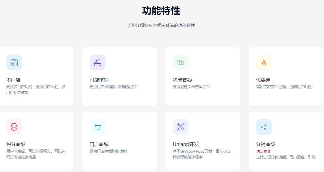 一款基于FastAdmin+ThinkPHP开发的一款洗车小程序系统。支持多门店、门店核销、次卡套餐、门店商城等功能,帮助汽车洗车维修保养行业提高服务质量,拉近与客户距离。提供无加密源代码,支持私有化部署