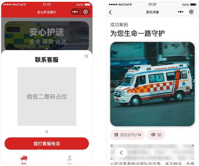 安心护送转运平台小程序是一款基于FastAdmin+ThinkPHP+Uniapp开发的非急救救护车租用转运平台小程序系统,可以根据运营者的业务提供类似短途接送救护服务,重症病人转运服务,长途跨省护送服务。提供全部前后台无加密源代码,支持私有化部署。