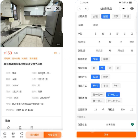 一款基于Fastadmin+ThinkPHP和Uniapp进行开发的多平台(目前适配H5,微信小程序)租房系统,支持多城市、出租房、预约看房等功能。提供全部无加密源码,支持私有化部署。