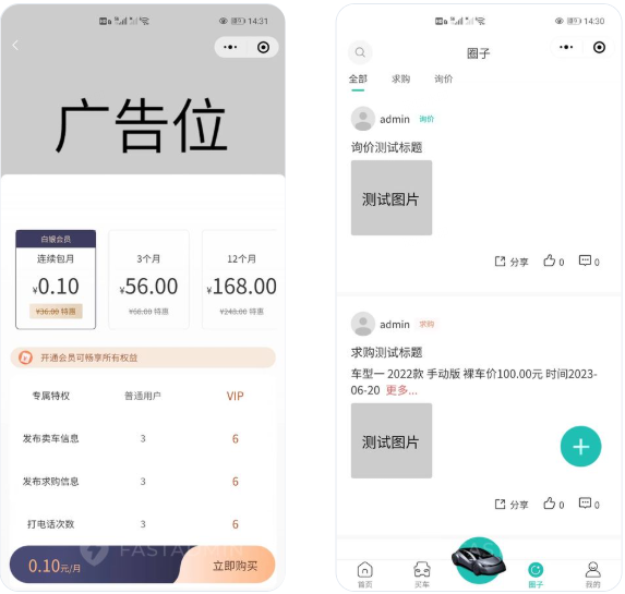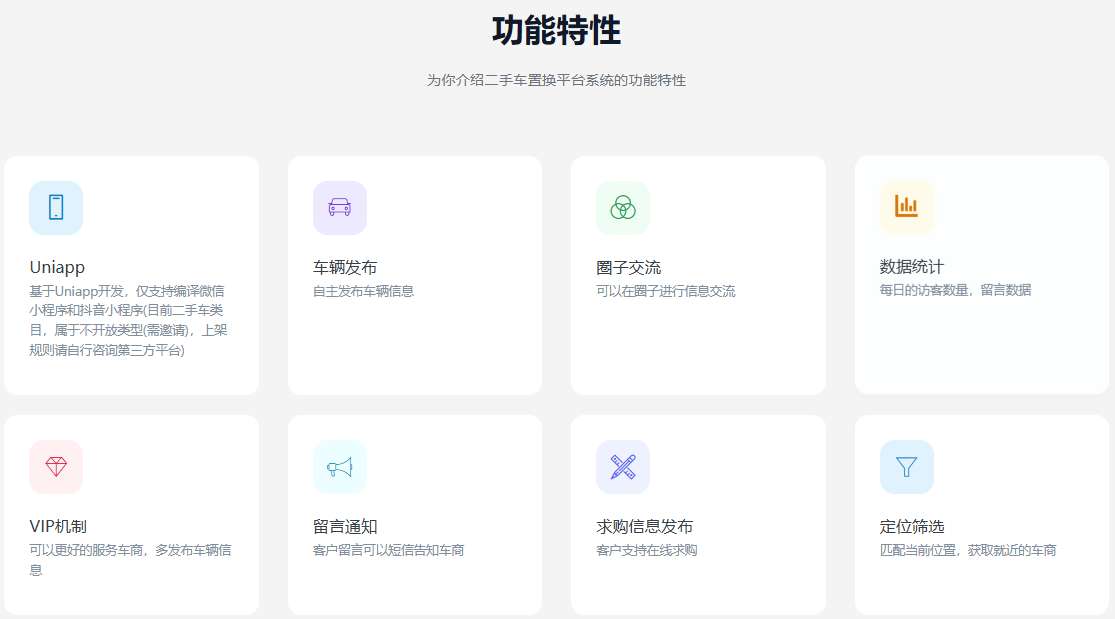 基于FastAdmin+ThinkPHP+Uniapp开发的一款二手车置换平台小程序系统,为买家和卖家提供了一个交流和交易的平台,促进了二手车市场的发展