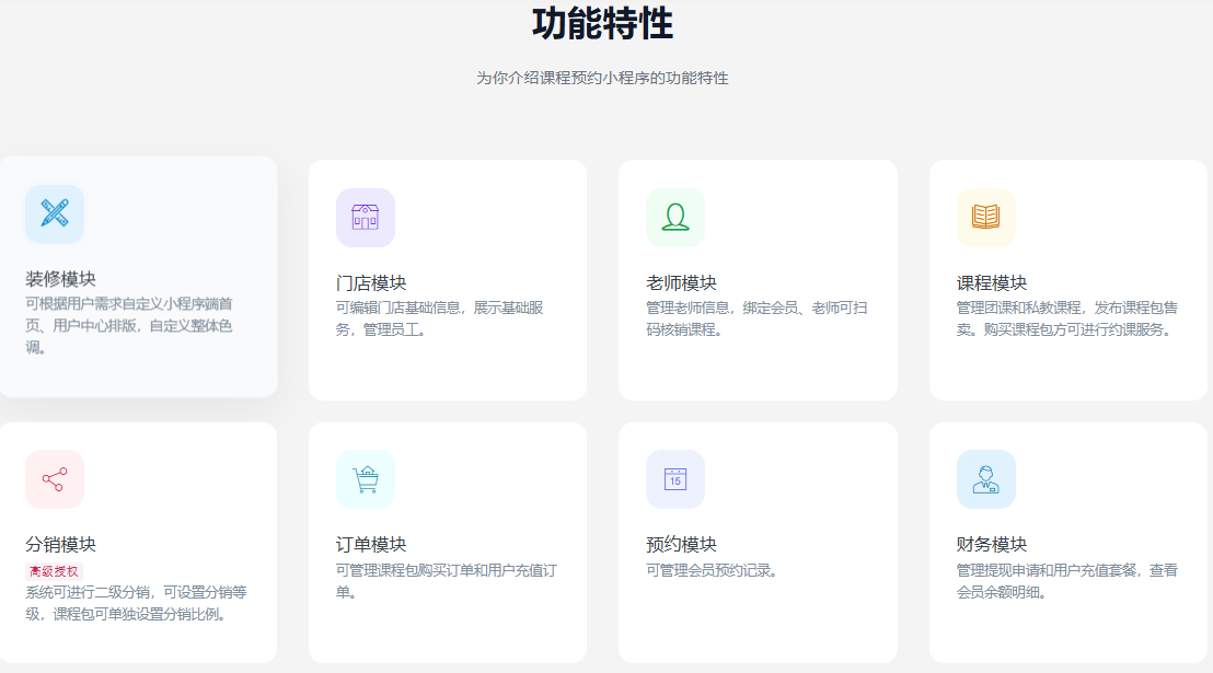 基于FastAdmin+UniApp开发的专属课程预约微信小程序,程序适用于SPA瑜伽、普拉提舍宾、培训机构等场所,通过多角色身份进行管理,让你的瑜伽馆/培训机构更加操作便捷。Uniapp小程序端包含会员入口、老师入口、员工入口。