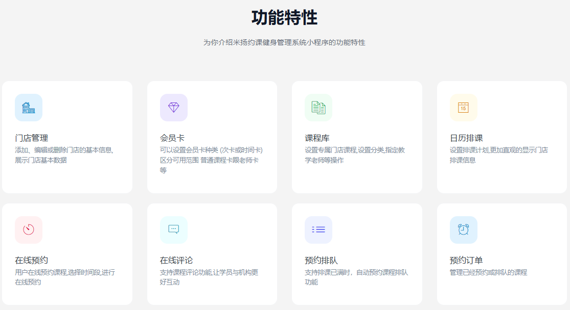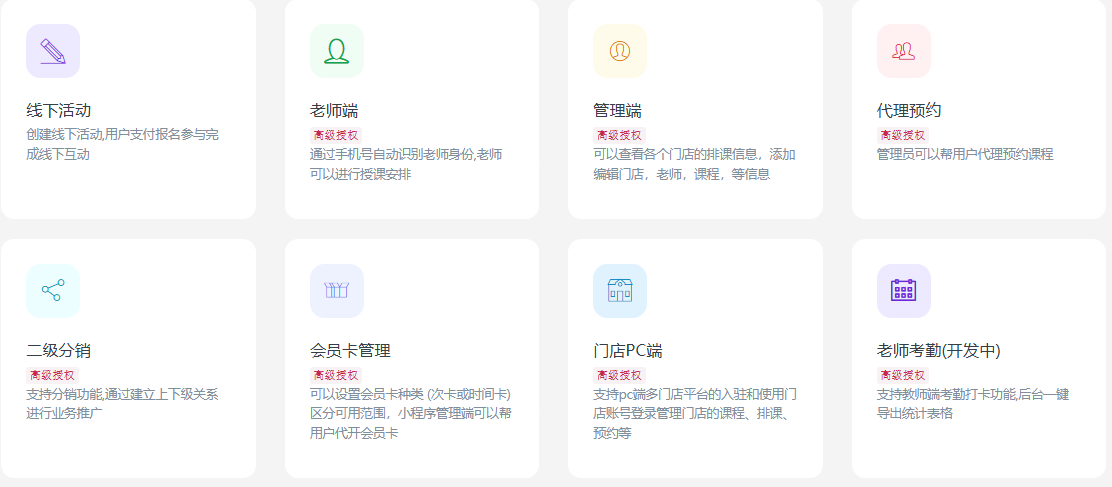 一款基于FastAdmin+ThinkPHP+Uniapp开发的约课健身管理系统,应用于健身房,健身工作室,运动会所,运动场馆,瑜伽馆,拳馆等泛健身行业的场馆中。米扬约课健身致力于为各种健身场馆打造真正有效的营销系统,简洁易用的客户信息管理系统,适合多门店、多角色、多场景的服务系统,紧跟健身行业的进步与升级,为广大客户提供优质的服务。