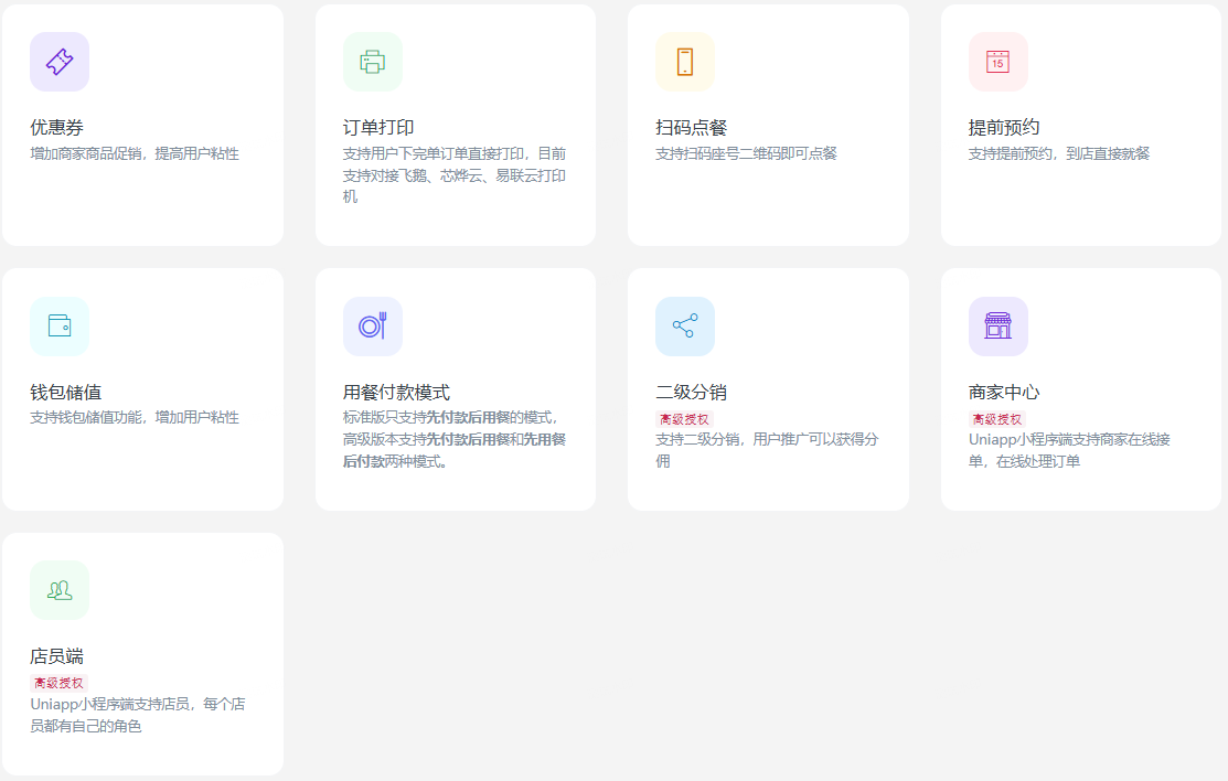 基于ThinkPHP+FastAdmin+UniApp开发的餐饮点餐系统,主要应用于餐饮,例如早餐、面馆、快餐、零食小吃等快捷扫码点餐需求,标准版本仅支持先付款后就餐模式,高级版本支持先付后就餐和先就餐后付费两种模式