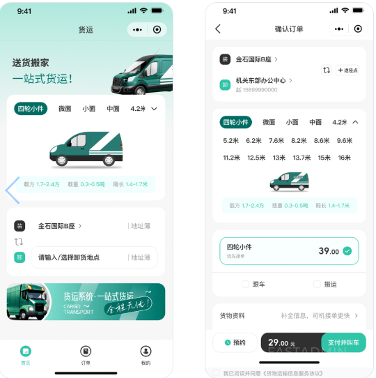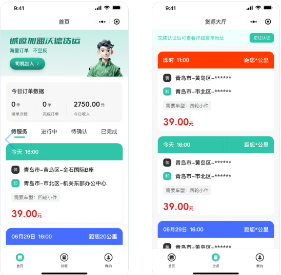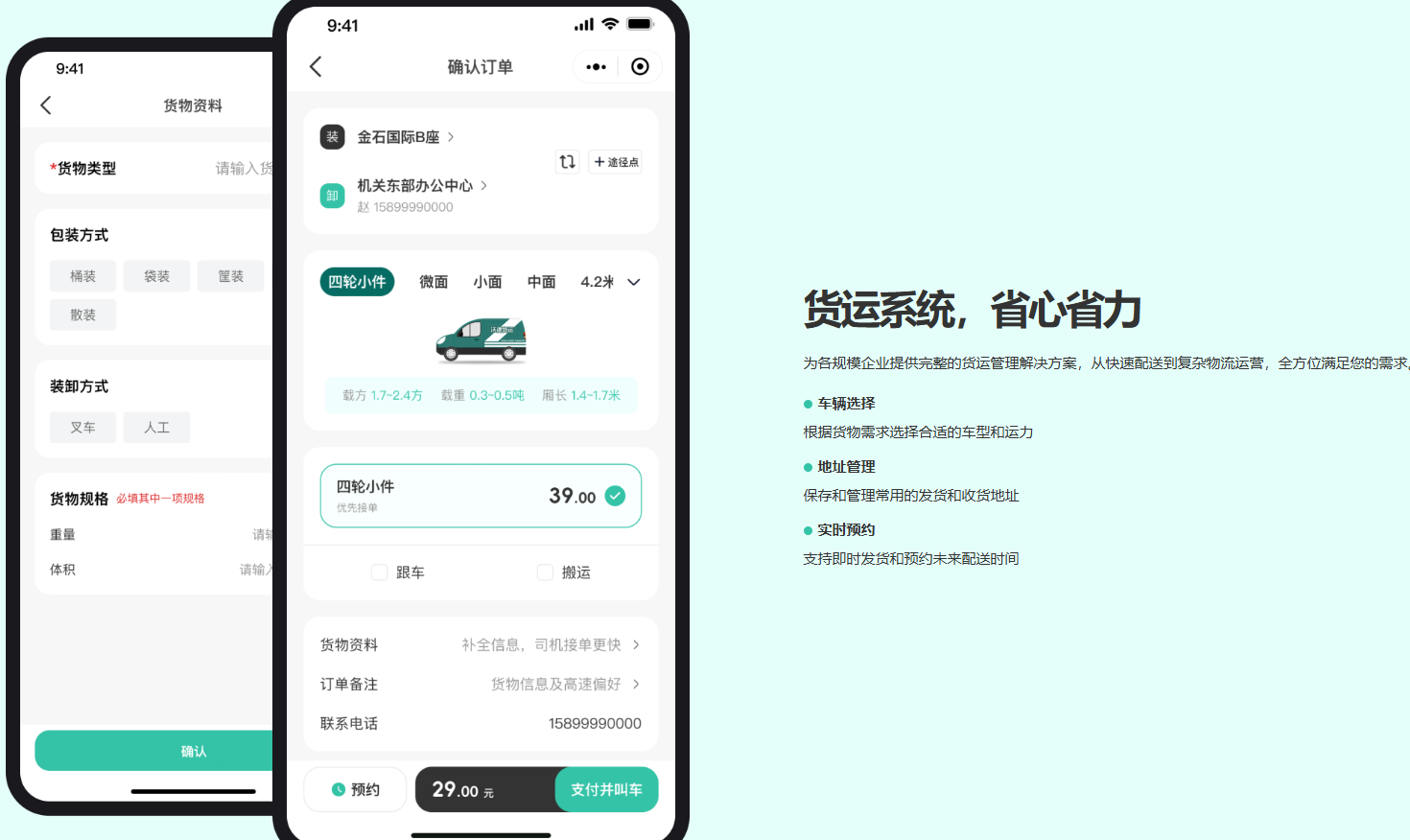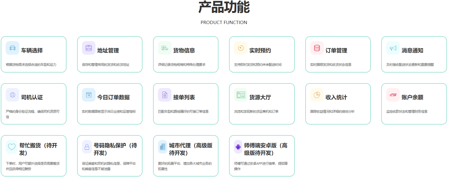 货运是基于UNIAPP+VUE+ThinkPHP开发的货运搬家小程序,分为用户端、师傅端及平台管理端核心能力三部分,主要功能有车型选择,价格计算,附加需求,订单管理等,师傅可进行在线入驻,入驻后接单抢单,收益提现等。“用户便捷下单 - 师傅高效接单 - 全程透明可控 - 安全可靠保障” 的闭环,满足个人搬家、企业货运、同城配送等多场景需求。