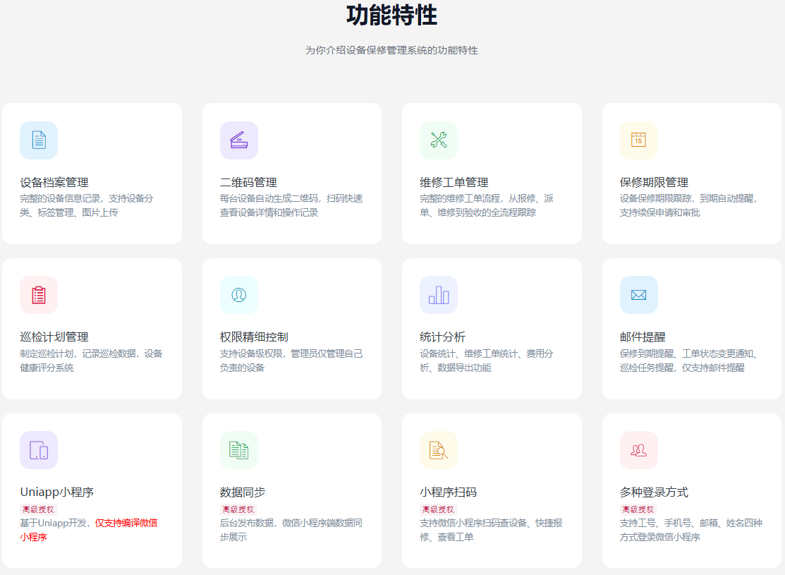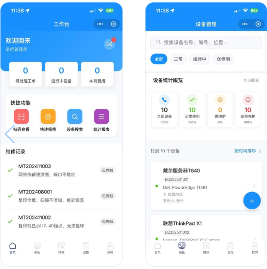 一款基于FastAdmin+ThinkPHP开发的设备全生命周期管理系统,支持设备档案管理、维修工单跟踪、保修期限提醒、巡检计划管理、扫码快速查询等功能,提供无加密源码,支持私有化部署。