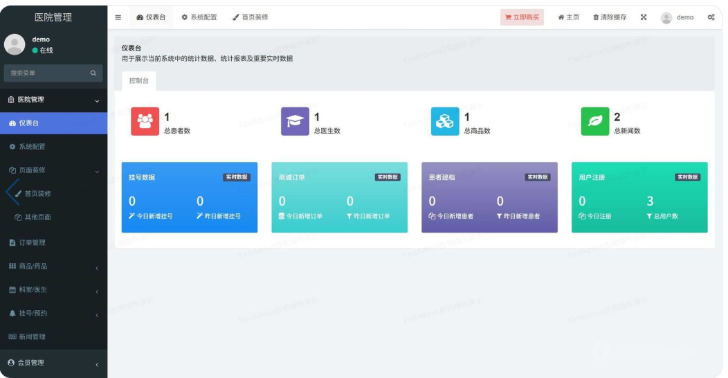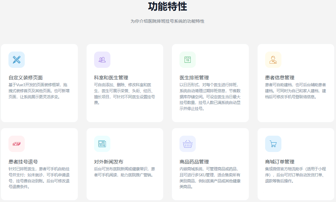 一款基于FastAdmin+UniAPP+Vue3开发的多终端(H5+微信小程序)医院排班挂号系统。主要功能包含页面装修、科室管理、医生排班、患者建档挂号、商城管理等,适用于医美机构、口腔诊所、私人诊所、公立医院等。内嵌微信小程序一键登录、物流助手、小程序客服功能;代码简洁无加密,二开简单。