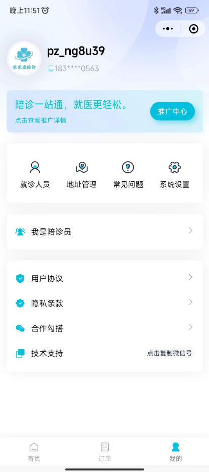 陪护师可在小程序端申请,平台审核通过后,可接收系统派单,支持陪护师自主接单、处理订单及提现等,提供更加及时和便捷的服务。