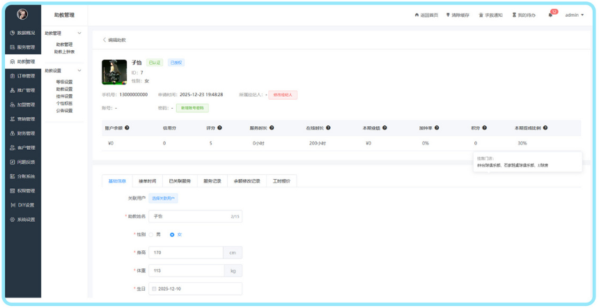 43、DIY(新增行业服务人员名称开关。例如玩伴、美容师、理疗师)