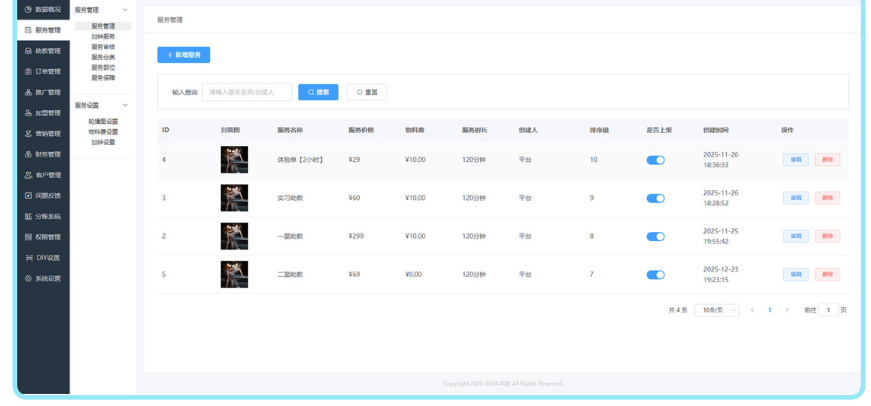 46、服务管理(新增服务分类、加钟服务、服务审核、服务设置、加钟设置)