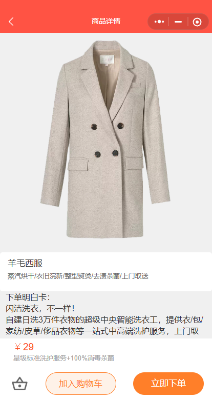 1、洗衣小程序含前端和后台,支持商品发布,编辑等功能